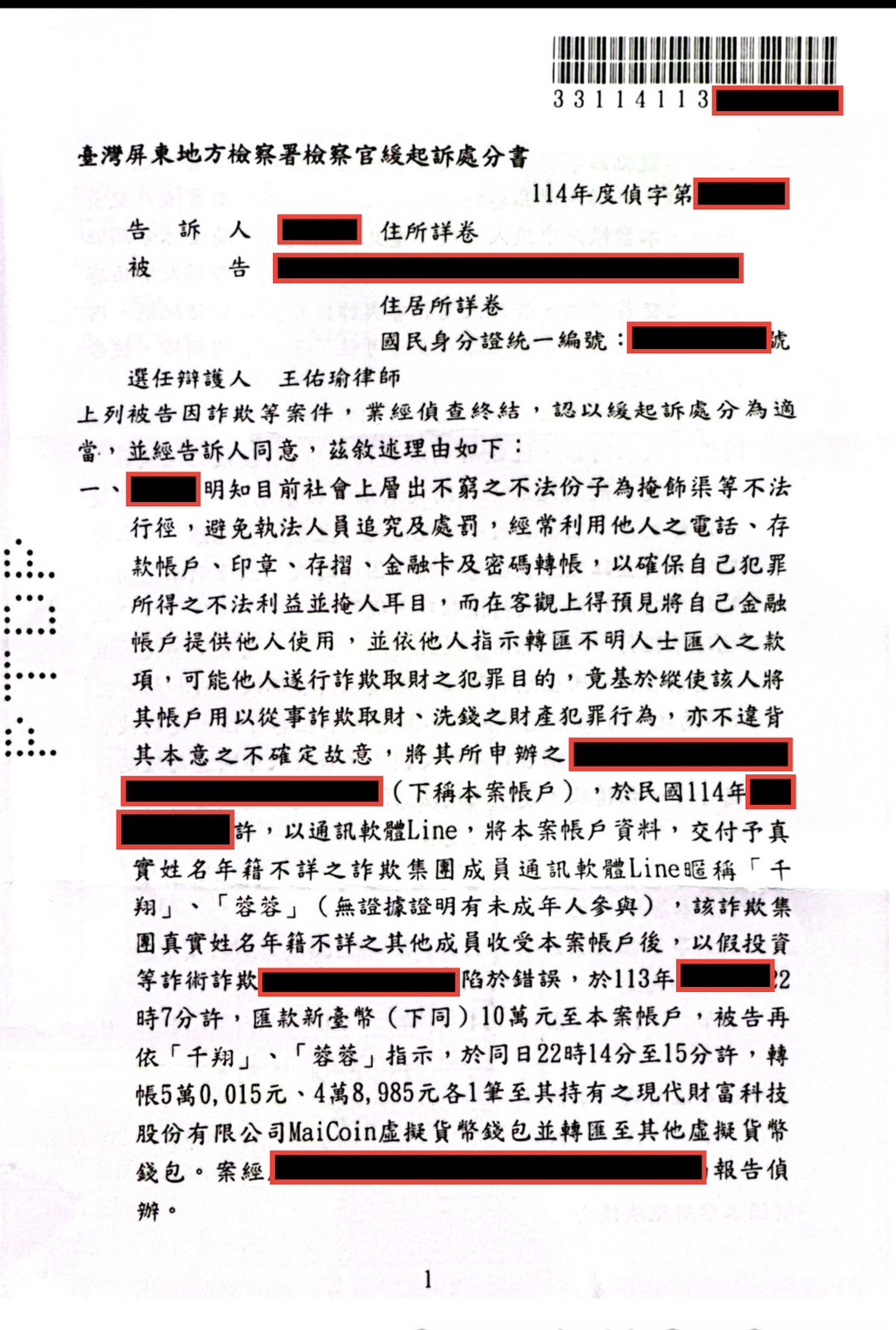 兼職(打工)+投資詐欺—不起訴案例 2025-11-21 兼職+投資詐騙,當事人最初是從事打工(綠能投資),待入群一段時間後,開始出現假投資企劃,並有詐騙集團擔任閨密洗腦,當事人接二連三被詐騙財產,過程中詐騙集團謊稱可以幫忙借款,導致當事人收到被害人被騙的款項,並再轉匯出去,無形中成為車手。
