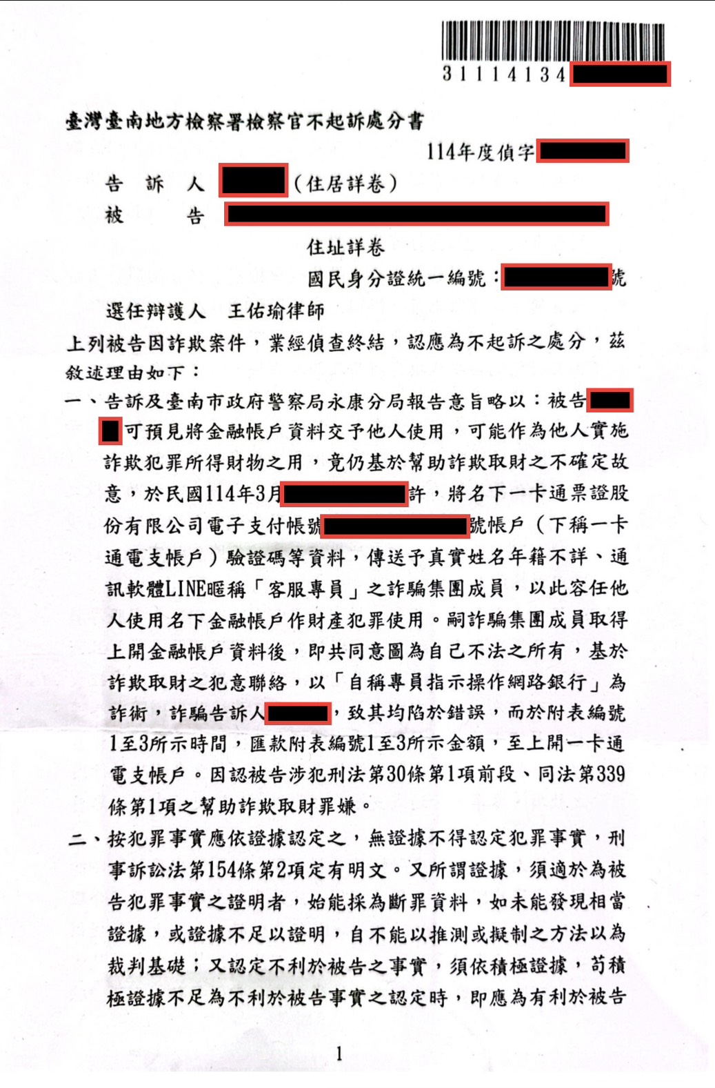 電子支付人頭戶(被騙驗證碼簡訊)-不起訴案例分享 2026-02-13 這位當事人一開始只是想在網路上賣東西,卻遭詐騙集團分別扮演假買家,利用話述表示要透過某某交易平台進行交易,後續便以賣場實名認證為由,一步步誘騙當事人,不但導致當事人財損,更在過程中騙取簡訊驗證碼,趁機辦理電子支付帳戶,隨後即利用開電支帳戶進行不法行為。