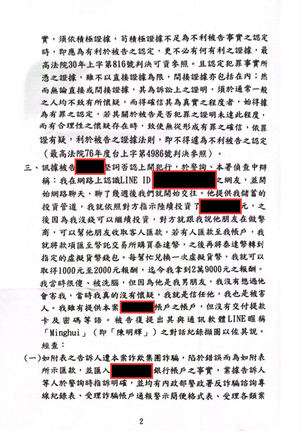 涉案條文:1、詐欺 2、洗錢 3、收受對價提供帳戶(洗防法22條3項)